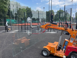 2 banen worden uitgerust met een panoramisch glasdesign, wat zorgt voor beter zicht voor spelers en voor de toeschouwers.